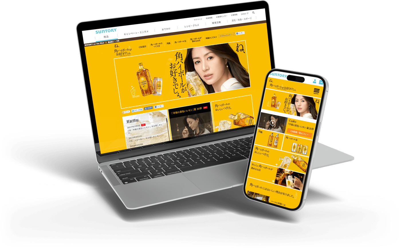 角瓶という長寿ブランドの“らしさ”を、読みやすい情報設計で再編集しました。ボトルの稜線やブランドカラーをモチーフに、トーン&マナー/タイポグラフィ/余白を統一。歴史・製法・哲学が自然に入ってくる章立てと、要点だけをそっと強調するマイクロモーションで、ブランド理解とブランド醸成を着実に高める体験を設計しています