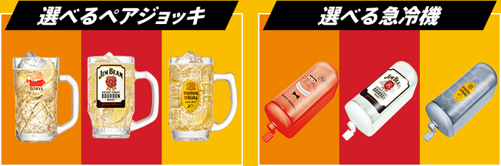 「専用QR付きカード」で当たりが出ると、さらに賞品として「ジムビーム ハイボール缶」(350ml)1缶、または両ブランドのハイボールジョッキやソーダがセットになった「夏ハイセット」をプレゼントします。